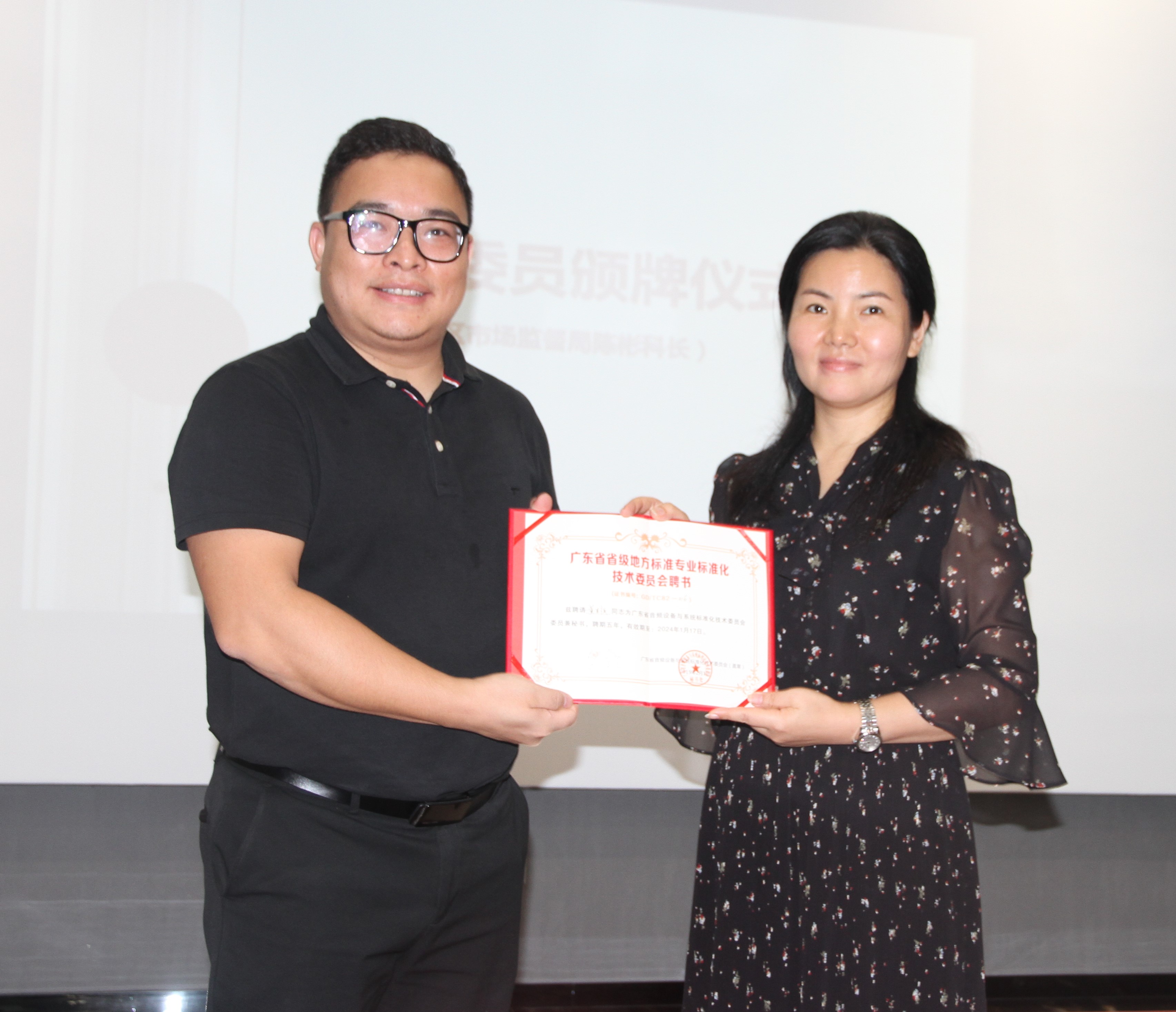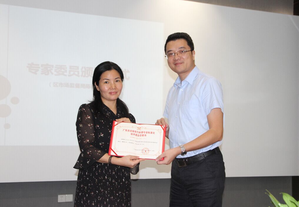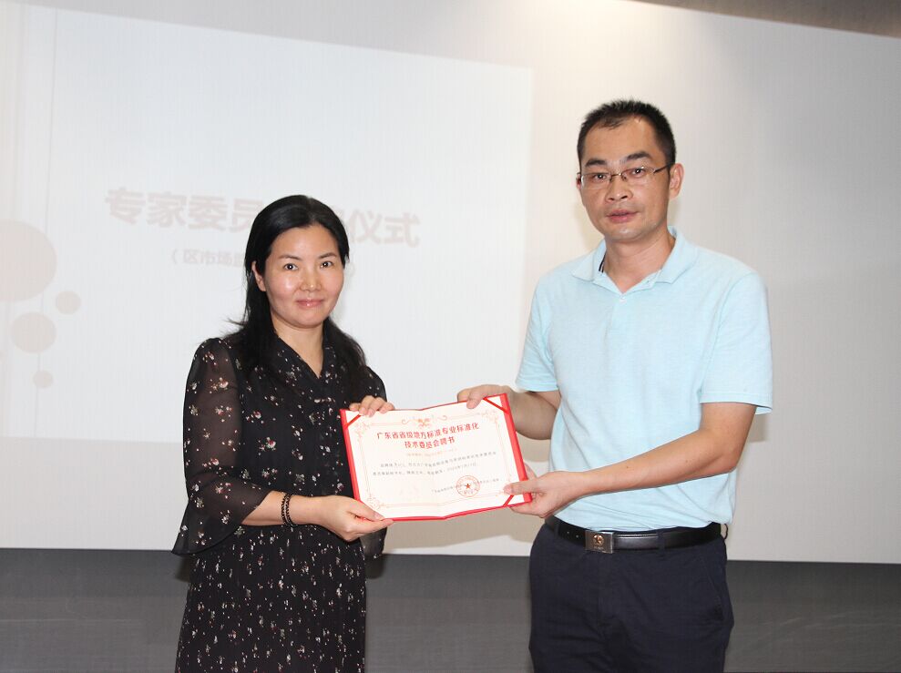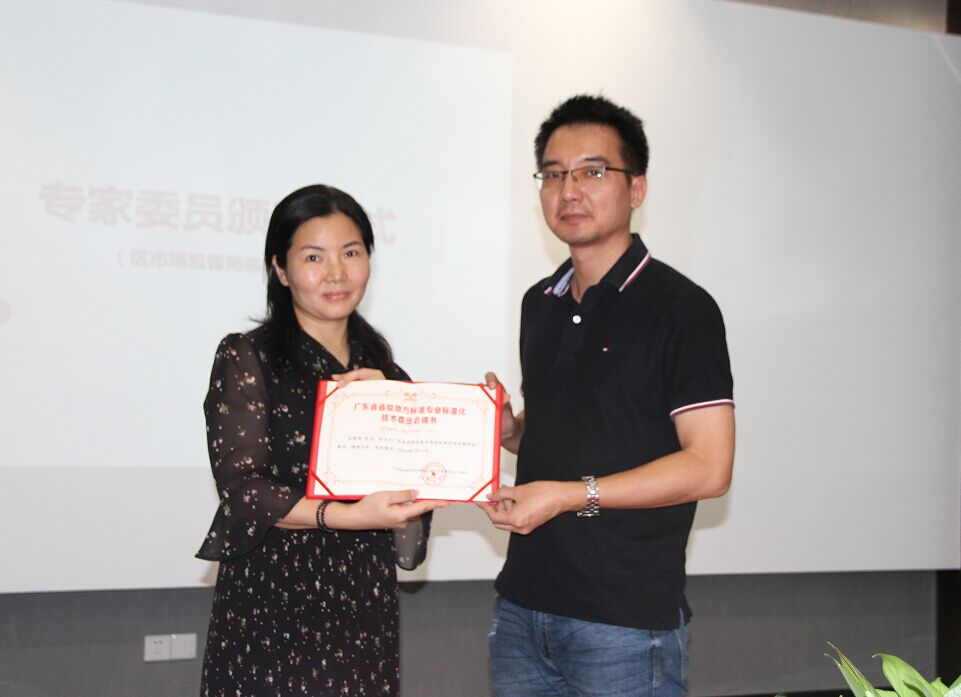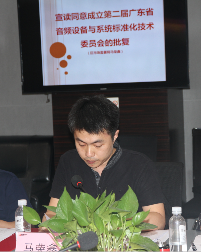 广州市番禺区市场监督管理局标准化科马荣鑫宣读了《广东省市场监督管理局关于同意成立第二届广东省音频设备与系统标准化技术委员会的批复》“粤市监处字[2019]50号”文件。广州市番禺区市场监督管理局标准化科科长陈彬为新一届的专家委员颁发聘书。