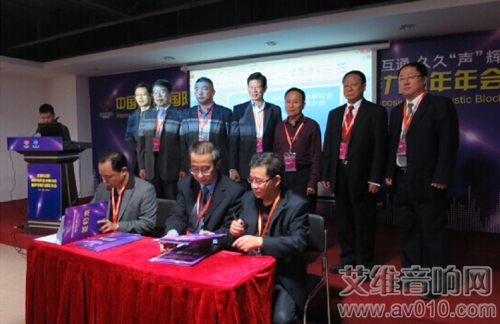 2014年11月中国(花都)国际电声技术研讨暨声学楼九周年年会各嘉宾见证签约仪式中音协会长周海昌(后右三)、中音协秘书长陈立新(后左三)、声学楼荣誉主席魏世雄(后右二)、南大声研所徐柏龄教授(后左二)、广州市声频电子产业技术创新联盟理事长何欢潮博士(后左四)等人合影留念↑
