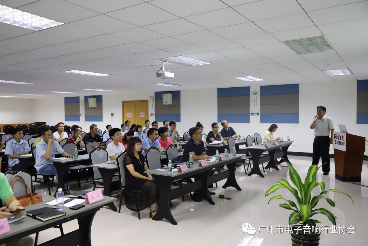 广东舞台美术研究会副会长羊晓方、广州市电子音响行业协会秘书长张昌海,飞达音响、国光电器、迪士普、杰士莱电子等知名企业声学负责人及行业精英共40余人参加了本次宣贯活动。