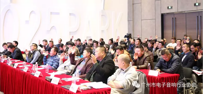 2018年1月12日下午,广州市电子音响行业协会二届二次会员大会在广州市花都区国光电器2025PARK智能科技园成功召开,中国电子音响行业协会会长、国光电器股份有限公司名誉董事长周海昌,中国声学学会副理事长、华南理工大学物理与光电学院声学研究所所长、博导、谢菠荪教授,广东省声像灯光科技促进会会长、广州大学声像与灯光技术研究所所长、彭妙颜教授等行业专家,广州市工信委易鸣巡视员、花都区中小企业局吴军平局长等领导出席,协会会长李杨春、副会长房晓焱、何伟峰、吴宪忠及其他副会长单位代表、各理事、监事、会员单位及部分行业媒体、同行相关单位、兄弟协会的领导、专家、嘉宾和受表彰先进代表等近100人参加会议。会上,广州市电子音响行业“三十年功勋奖”及一批2017年度优秀企业和个人受到表彰。