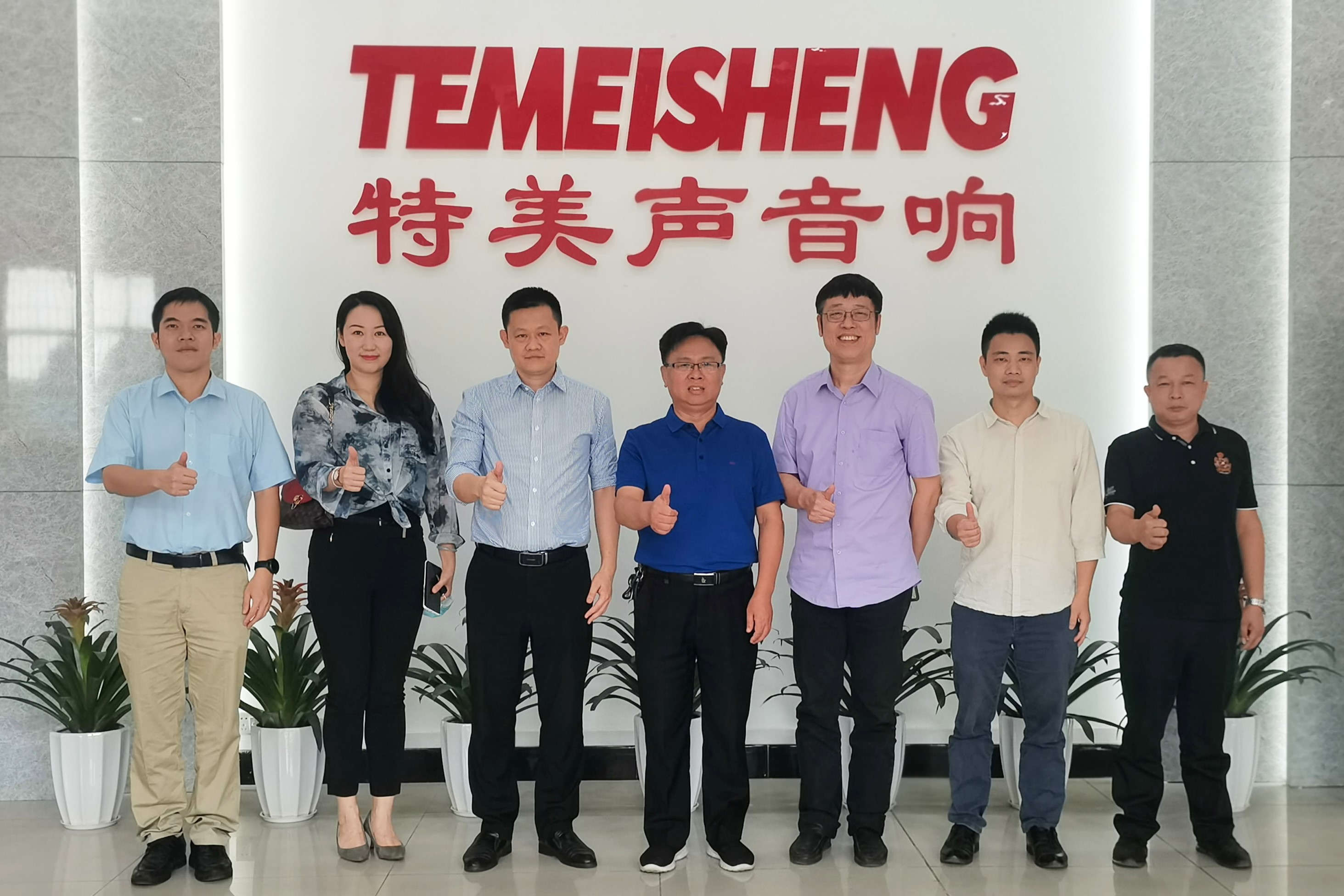 2021年10月29日上午,协会副会长兼秘书长张昌海与广州市标准化研究院杨晓峰主任、中科天网(广东)标准技术研究有限公司温峻峰总经理等一行5人,走访了监事单位广州特美声电器有限公司(以下简称“特美声电器”),听取企业诉求,帮助和指导企业开展科技成果评价答疑解惑,服务会员企业。