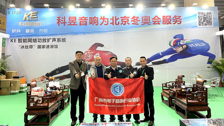 走访为2022北京冬奥会服务企业巨声视听科技(广州)有限公司展位↑