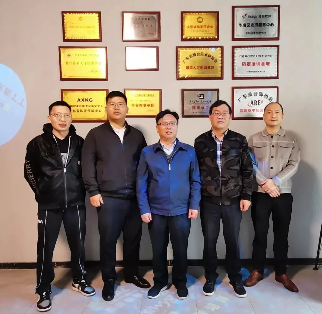 2022年1月24日上午,协会副会长兼秘书长张昌海一行在广州赛佳声学灯光工程有限公司总经理范笃勇、广州思成舞台设计有限公司总经理管伟等人的陪同下,走访了广州丁丁舞台技术有限公司(以下称“丁丁培训中心”),受到丁丁培训中心校长吕桂林的热情接待。
