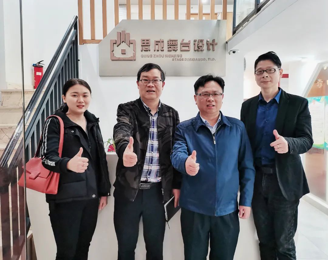 当日,张昌海一行还走访了广州赛佳声学灯光工程有限公司和广州思成舞台设计有限公司。