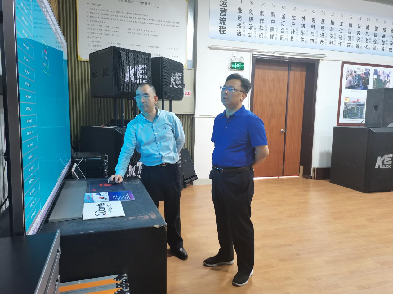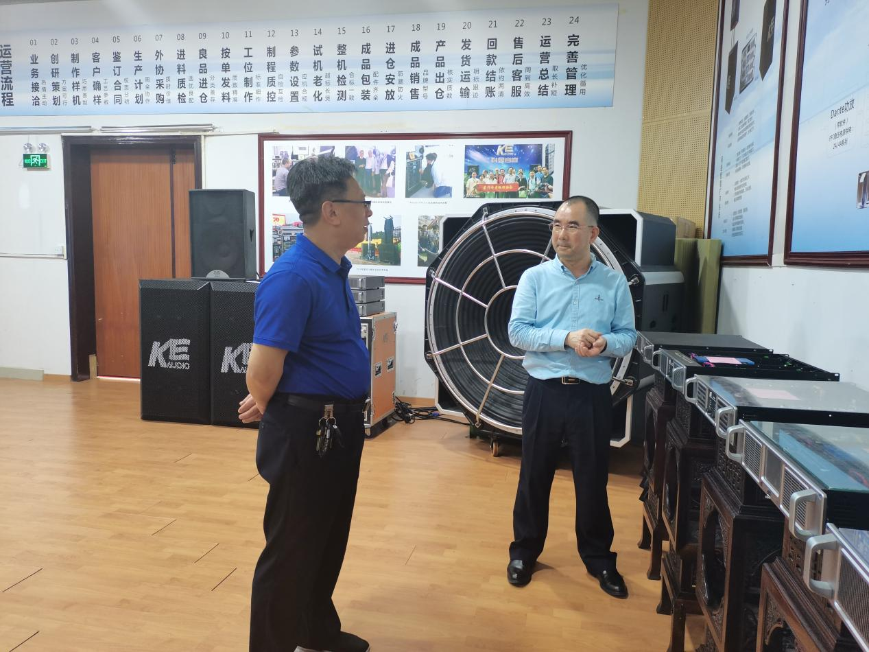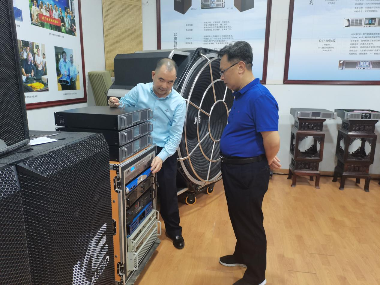 严文昌董事长陪同张昌海等人参观了公司展厅,演示和介绍了产品的技术性能;介绍了科昱音响的功放产品的设计理念和研发布局,不仅讲究“三宫六院”,中轴对称、阴阳平衡,秉承东方之美,而且技术领先,功放输出功率可以达到市场同类产品的5~10倍。科昱音响在2022年北京冬奥会用到的网络智能化功放产品,采用了网络智能化功放主/备无缝切换的“不断声”系统;此外,科昱音响生产的产品和生产流程还入选院校教学和专业工具书的典型案例。张昌海对科昱音响精益求精的工匠精神表示肯定。