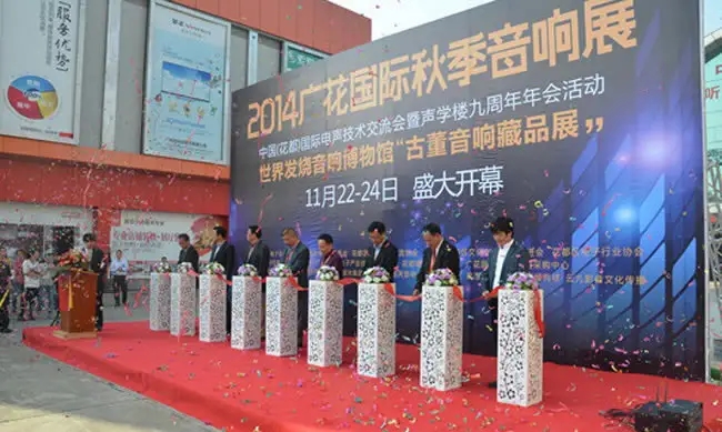 同期,“2014广花国际秋季音响展”也与11月22日盛大举行。中音协周海昌会长、陈立新秘书长以及广州市科信局领导、花都区政府罗干政副区长、花都区电子行业协会刘建佳会长、声学楼管委会魏世雄名誉主席、声学楼管委会杨春秘书长出席了以及相关电声企业主要负责人等出席启动仪式并剪彩。