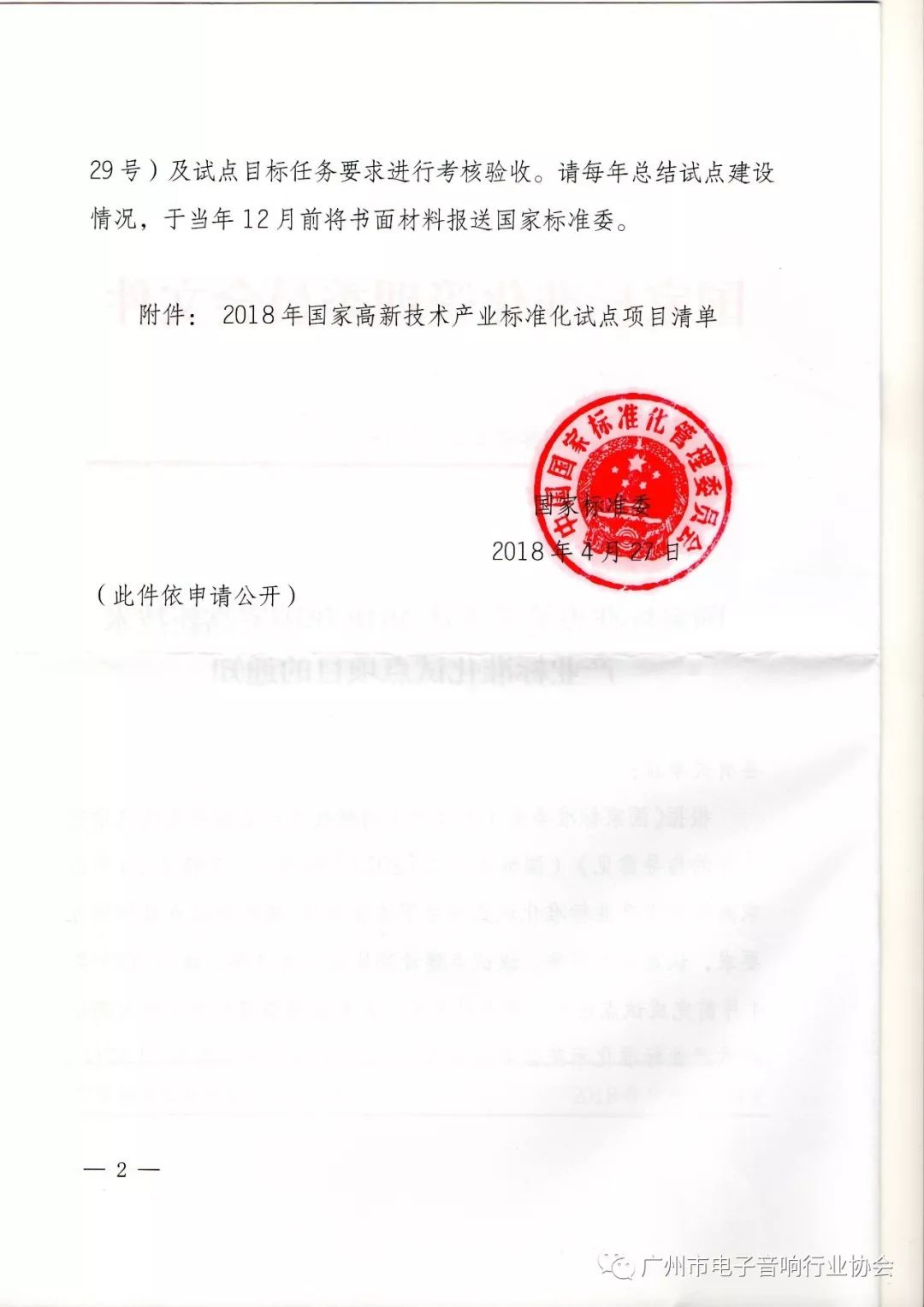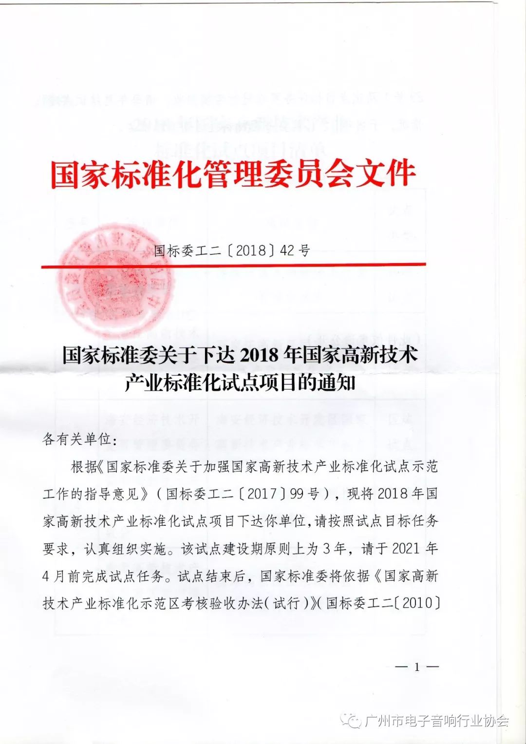 会上,省质监局标准化处方强副处长宣读了《国家标准委关于下达2018年国家高新技术产业标准化试点项目的通知》。