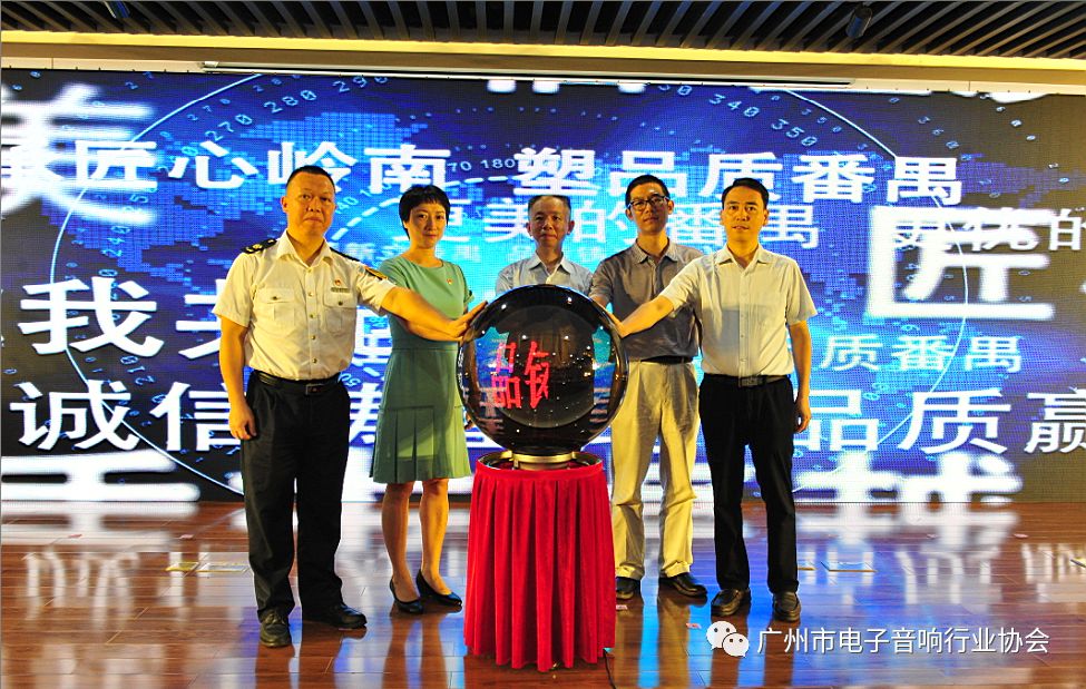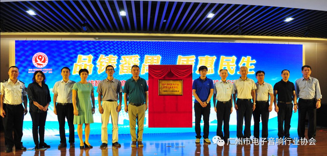 中国电子音响行业协会陈立新秘书长、彭泓副秘书长、广东省质监局标准化处方强副处长、广州市质监局张嘉红副局长、番禺区政府麦洁萍副区长、市质监局标准化处张鸿副处长、市质监局质量处邬细宝调研员、广州市电子音响行业协会张昌海秘书长、番禺区政府办孙江副调研员、花都区电子行业协会徐伟根秘书长、巨大集团庄炳武董事长、番禺区强区办主任、区市场监管局卢鼎局长共同为“国家高新技术产业标准化试点单位广州番禺巨大汽车音响设备有限公司”揭牌。