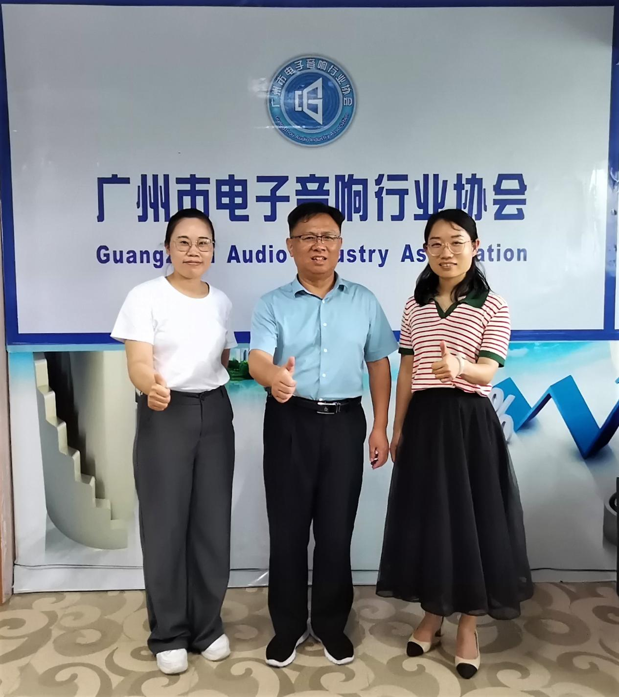 2022年6月29日,花都区科工商信局领导焦利敏博士莅临广州市电子音响行业协会秘书处,开展花都区声光电产业链调研工作,受到了协会副会长兼秘书长张昌海的热情接待。