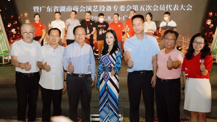 中央广播电视总台技术系统赵贵华局长,花都区政协副主席、花都区科技工业商务和信息化局局长陈为文,中国照明学会舞台电影电视照明专业委员会主任委员王京池、副主任委员甄何平、郭亮、伊天夫、秘根杰、白文国、曲国军、郑炳松,顾问委员王保国、劳伟杰、冯德仲等委员和专家,广东演艺设备行业商会名誉会长李炎华、秘书长陈燕珊,广东省舞台美术研究会会长梁溪清、名誉会长季乔、秘书长黄海忠,广东省声像灯光科技促进会秘书长曾德良,广东省照明电器协会秘书长聂良宏,广州市电子音响行业协会会长吴宪忠、副会长兼秘书长张昌海、办公室主任李灵燕,广东省江西商会演艺设备专委会会长王志宏、秘书长刘生明,广东省广西商会演艺设备专委会会长戴小明、秘书长黄显强,声光视讯行业联盟粤芒副会长刘勇华,广东省湖南商会演艺设备专委会高级顾问王京池、盛东良、李华以及《现代电视技术》主任李幼林、中国照明网总经理丁云高、阿拉丁照明网总监郑雅琴、花都区融媒体中心主任胡兴龙等行业媒体,及广东省湖南商会演艺设备专委会会员代表等500余人汇聚一堂。