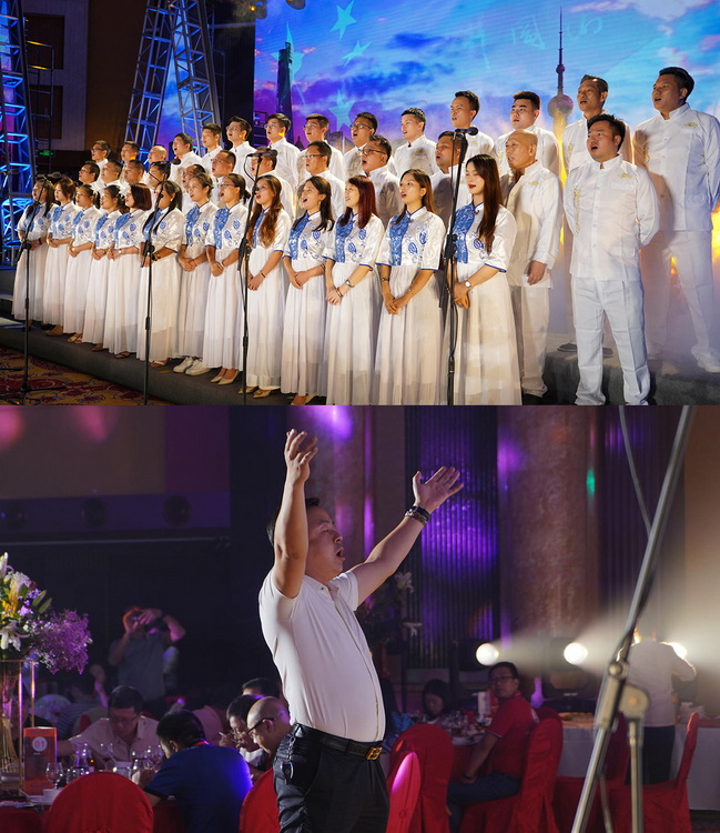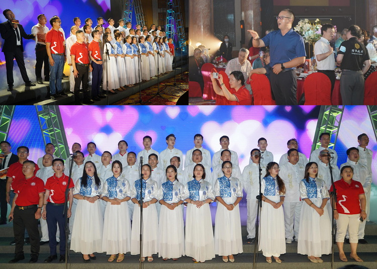 湖南演艺专委会业余合唱团在总导演陈万演带领下,带来《友谊地久天长》大合唱。