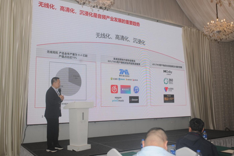 与中国电子音响行业协会第十届理事会第四次会议同期,还举办了高清无线音频(HWA)产业组织理事(扩大)会议。参加会议的有:中国电子音响行业协会副会长、华为终端有限公司战略Marketing 副总裁、高清无线音频(HWA)产业组织理事长李昌竹,国光电器股份有限公司、歌尔股份有限公司、深圳市漫步者科技股份有限公司、中国电子科技集团公司第三研究所、北京太合音乐文化发展有限公司、荣耀终端有限公司等理事单位代表出席了会议,广州视琨电子科技有限公司、杭州国芯科技股份有限公司、江重庆物奇微电子有限公司等3家会员代表列席了会议。会议由协会副秘书长、高清无线音频(HWA)产业组织秘书长彭泓主持。