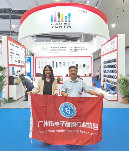 广州市电子音响行业协会是广东省外贸转型升级基地工作站联盟副理事长单位、广州市时尚产业集群灯光音响分链主单位、广东省广州市花都区国家外贸转型升级基地(声频电子)工作站。展会期间,中国电子音响行业协会副秘书长、广东省外贸转型升级基地工作站联盟副理事长、联盟电子信息专业委员会主任委员、广州市电子音响行业协会副会长兼秘书长张昌海、协会办公室主任李灵燕走访了参展的部分会员企业、花都区国家外贸转型升级基地(声频电子)企业(简称:“花都基地企业”)和业内部分企业,了解行业动态和新产品、新技术,倾听企业所思所想,探讨交流企业和行业的发展。