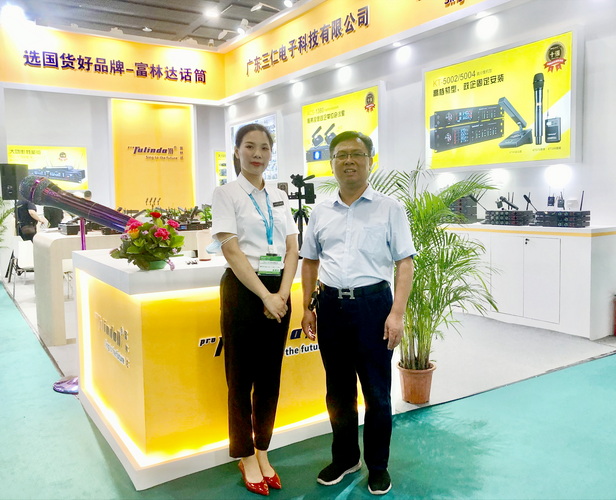 走访广州市金赉电子有限公司展位,与公司总经理何文敏(左)合影↑