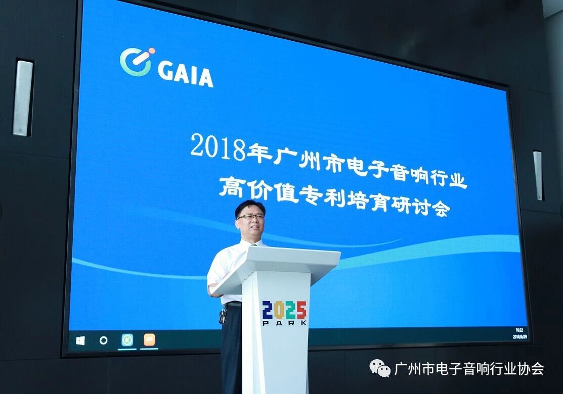 2018年6月29日下午,由广州市知识产权局、广州市花都区知识产权局指导,广州市电子音响行业协会主办、广州三环专利商标代理有限公司、广州国光智能电子产业园有限公司承办的“2018年广州市电子音响行业高价值专利培育研讨会”在花都区“2025PARK”产业园展示中心成功举办。