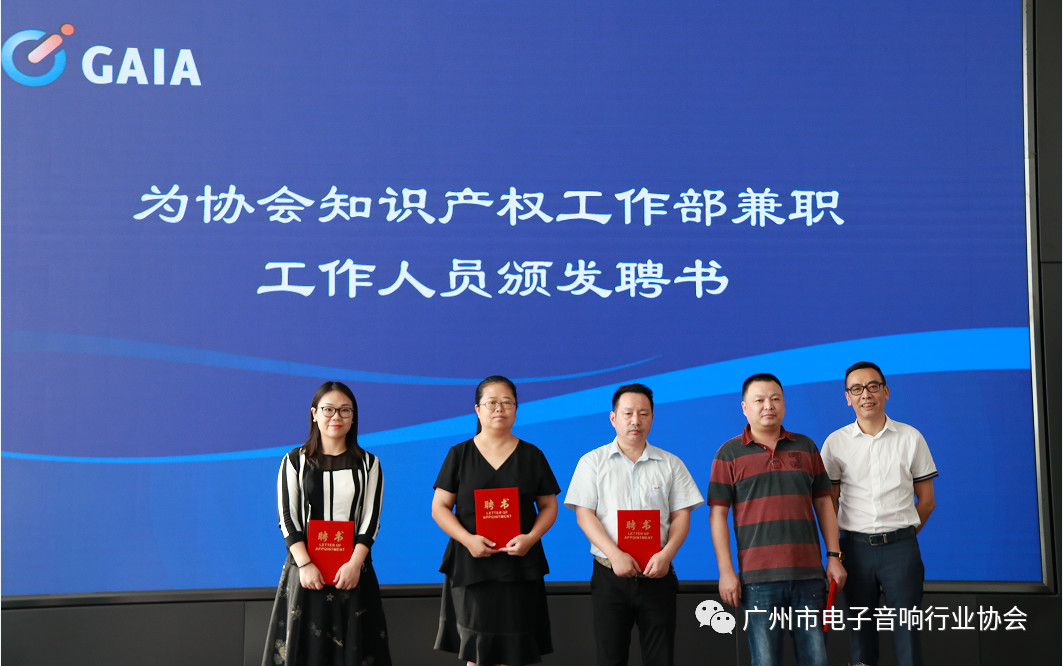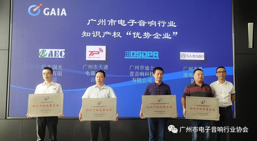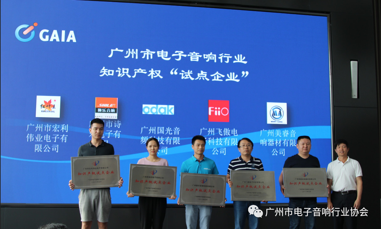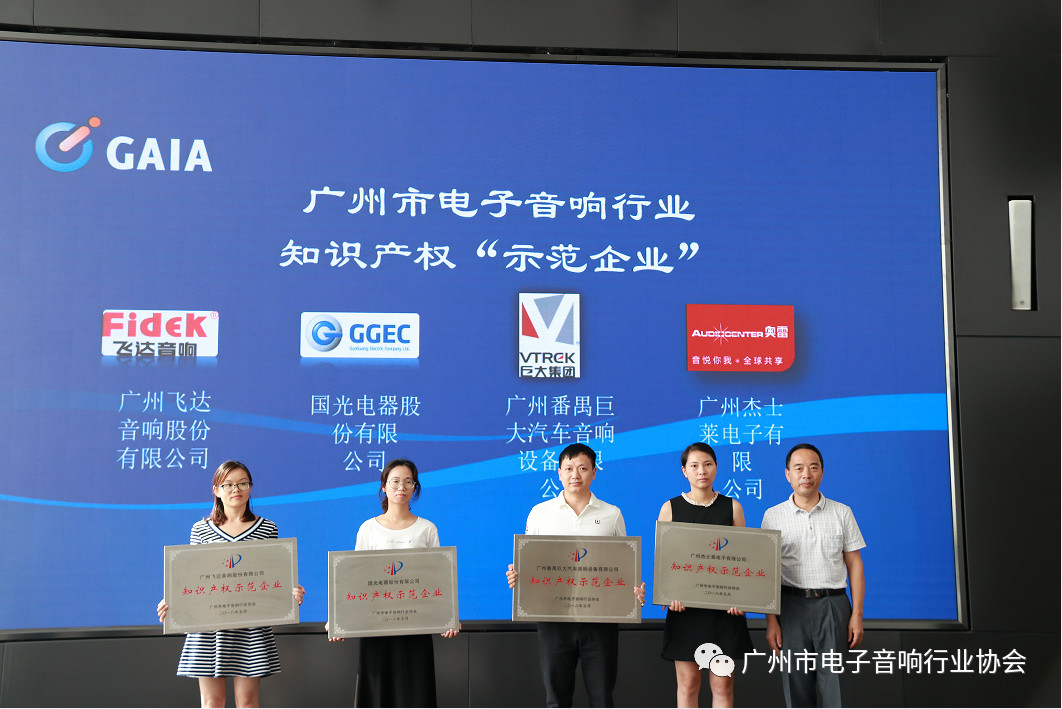协会副会长、国光电器股份有限公司副总裁房晓焱为获得广州市电子音响行业知识产权“试点企业”的单位授牌。