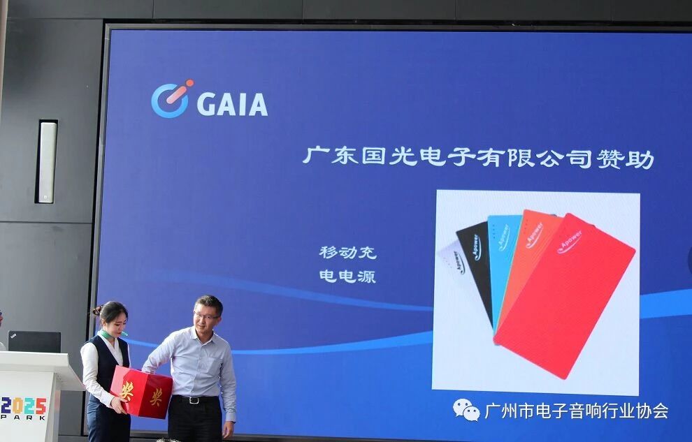 协会会长、广州杰士莱电子有限公司总经理李杨春为广州市电子音响行业知识产权优势企业的获奖单位授牌。