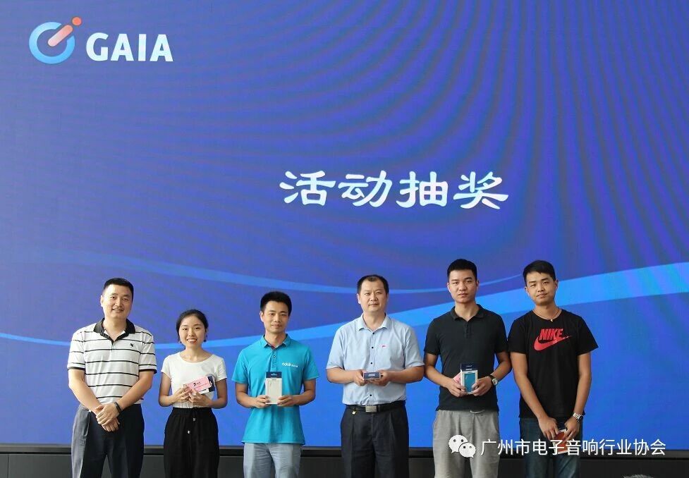 研讨会过程中还进行了抽奖环节,奖品由广东国光电子有限公司提供赞助,广东国光电子有限公司陈吉宏总经理、广州三环专利商标代理有限公司副总经理颜希文老师、协会理事、广州美睿音响器材有限公司董事长周拥锋、花都区知识产权局副科长花婷婷女士分别上台,各抽取了5名幸运奖,并与中奖幸运儿合影。