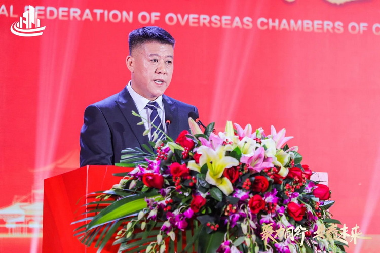 广东省异地商会联合会会长单位——弘胜集团董事长孙永胜代表企业致辞↑