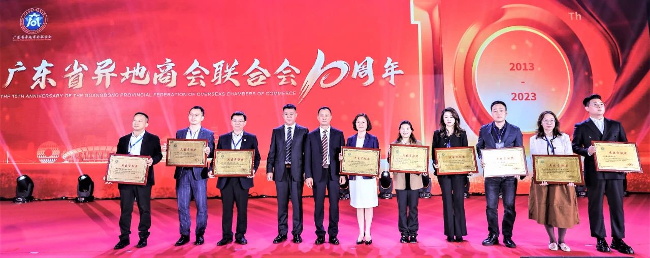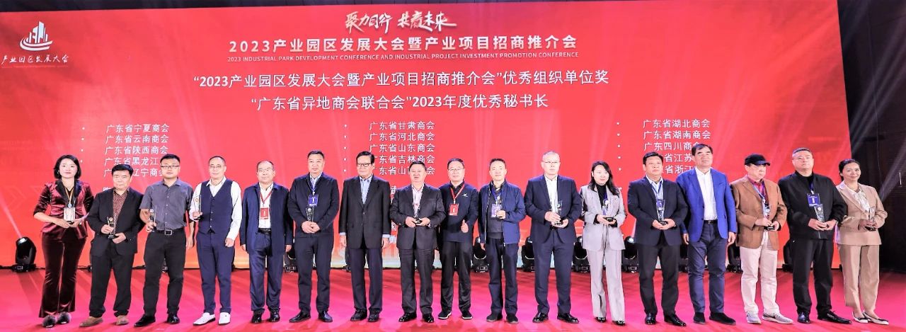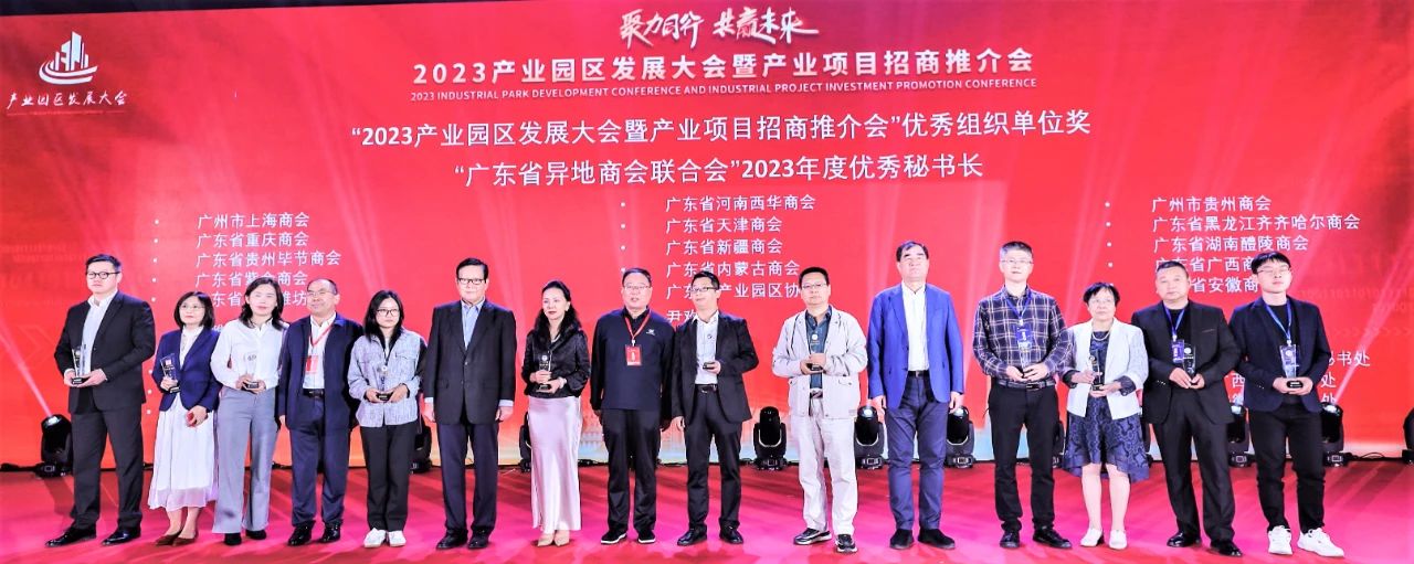 颁发“2023产业园区发展大会暨产业项目招商推介会”优秀组织单位奖、“广东省异地商会联合会2023年度优秀秘书长”奖↑