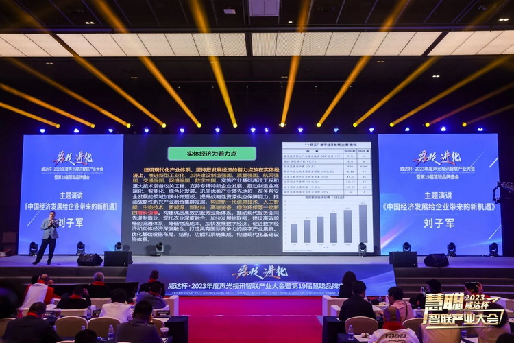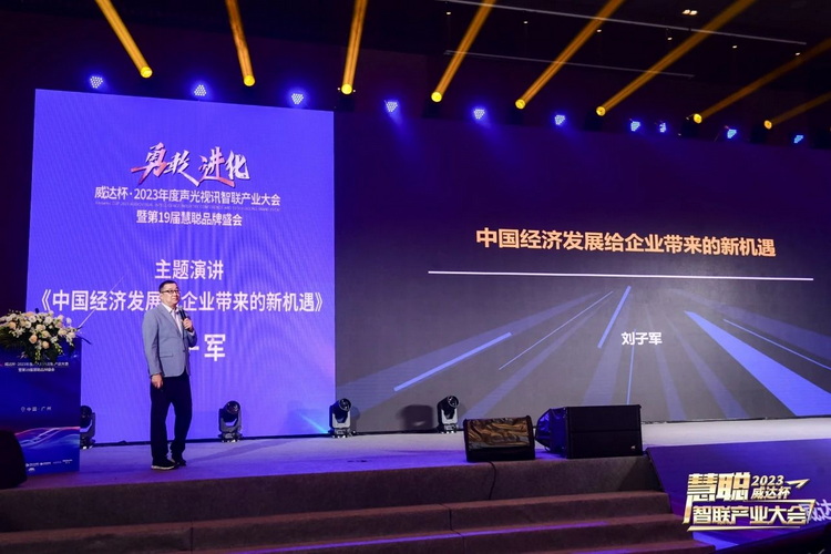 高级经济师、凤凰卫视等多家媒体知名时事评论员、一带一路国际合作发展(深圳)研究院高级研究员刘子军老师发表演讲,以《中国经济发展给企业带来的新机遇》为主题,从宏观市场经济角度出发,解读声光视讯行业这一领域产业链发展趋势,把他对当前市场环境的理解和思考,分享给在座的声光视讯人,与行业精英研判新形势,共商新举措,为行业整体正向发展提供了科技、产业、人才多方位的解析,为实现行业高质量发展而共同努力。