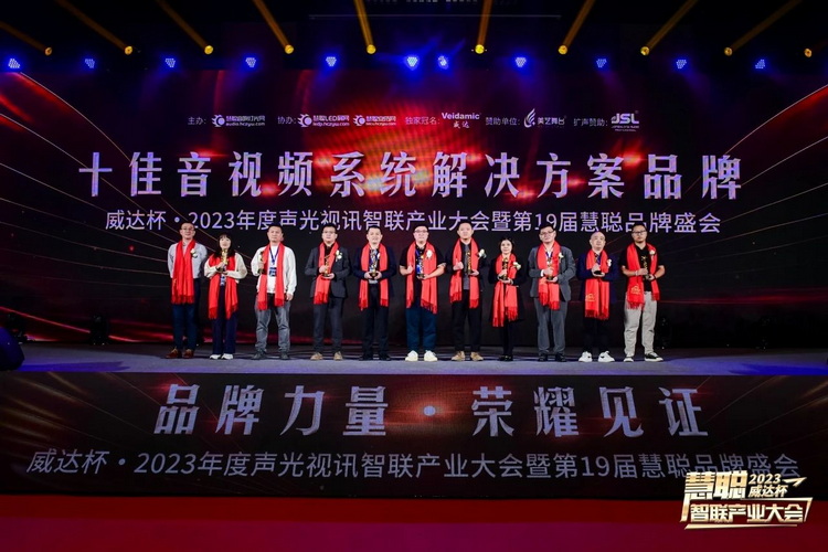 2023年11月29日,2023声光视讯智联产业大会暨第19届慧聪品牌盛会在广州越秀国际会议中心盛大举行。行业上下游超1000名精英同仁从五湖四海奔赴而来,为品牌荣耀同庆贺、共奋进;为行业发展拓思路、明路径,共同携手开启一场大规模、高规格、强阵容的产业大会。广州市电子音响行业协会代表应邀参加活动。祝贺协会副会长单位广州飞达音响有限公司(Fidek飞达音响)、监事长单位广东万昌科技实业有限公司(JSL爵士龙)荣获“十佳专业扩声(民族)”品牌;理事单位广东保伦电子股份有限公司(itc)荣获“十佳专业扩声(民族)”品牌、十佳广播会议(民族)品牌;会员单位广州佳比亚电子科技有限公司(JUSBE佳比)荣获“十佳音视频系统解决方案”品牌,音创伟业科技有限公司(音创)荣获“十佳娱乐系统(民族)品牌”称号。