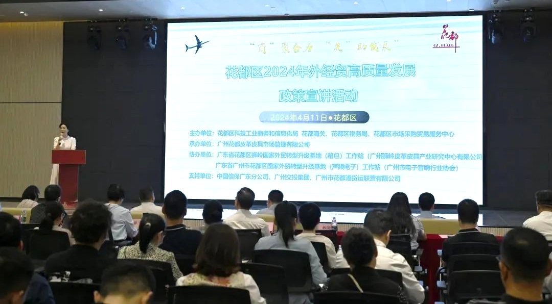 4月11日下午,广州市花都区科技工业商务和信息化局联合花都海关、花都区税务局、区市场采购贸易服务中心、区工商联等部门,广东省广州市花都区国家外贸转型升级基地(声频电子)工作站(广州市电子音响行业协会)以及相关外经贸服务企业,举办2024年外经贸高质量发展政策宣讲会,加快推动政策红利直达市场主体,助力企业拓展国际市场,推动花都对外贸易高质量发展。宣讲会吸引了全区约300家外贸企业参加。